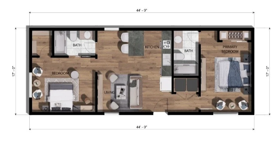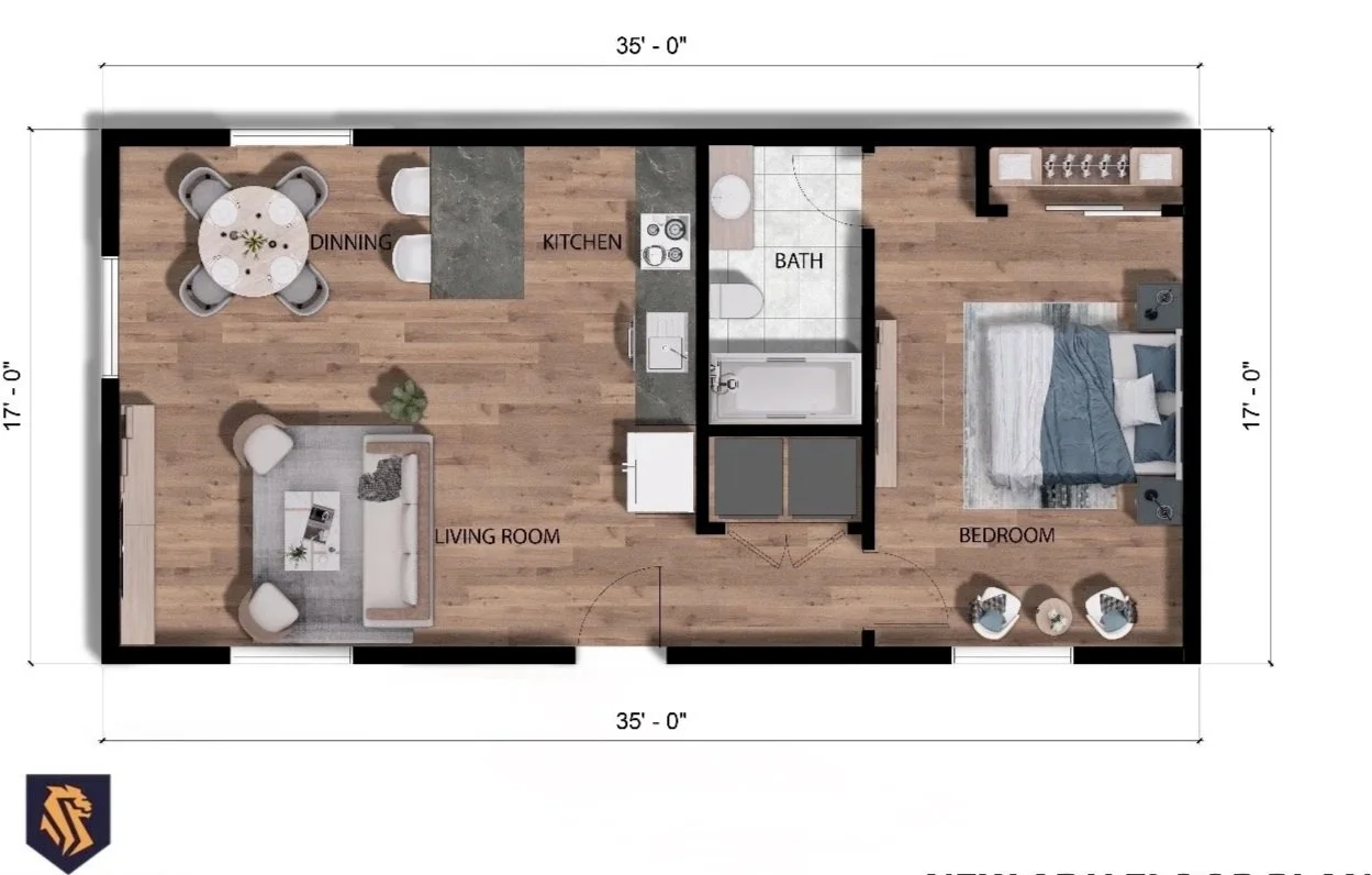 Experience the perfect balance of space and efficiency with our 748 square foot "Aspen" ADU. This thoughtfully designed floor plan proves you don't have to compromise comfort in a smaller footprint. At 748 sq ft, it offers ample room for a generous bedroom, a full kitchen, a comfortable living area, and a functional bathroom. It’s an ideal, versatile solution, loved by so many happy customers for generating rental income or housing family. Explore the layout and see how easily this permitting-approved design can be fully customized to fit your vision and lifestyle.