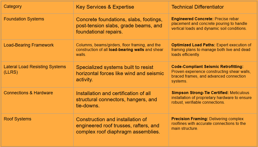 The Structural Specialists: Foundations, Framing, and Lateral Systems Built for the Long Term.
